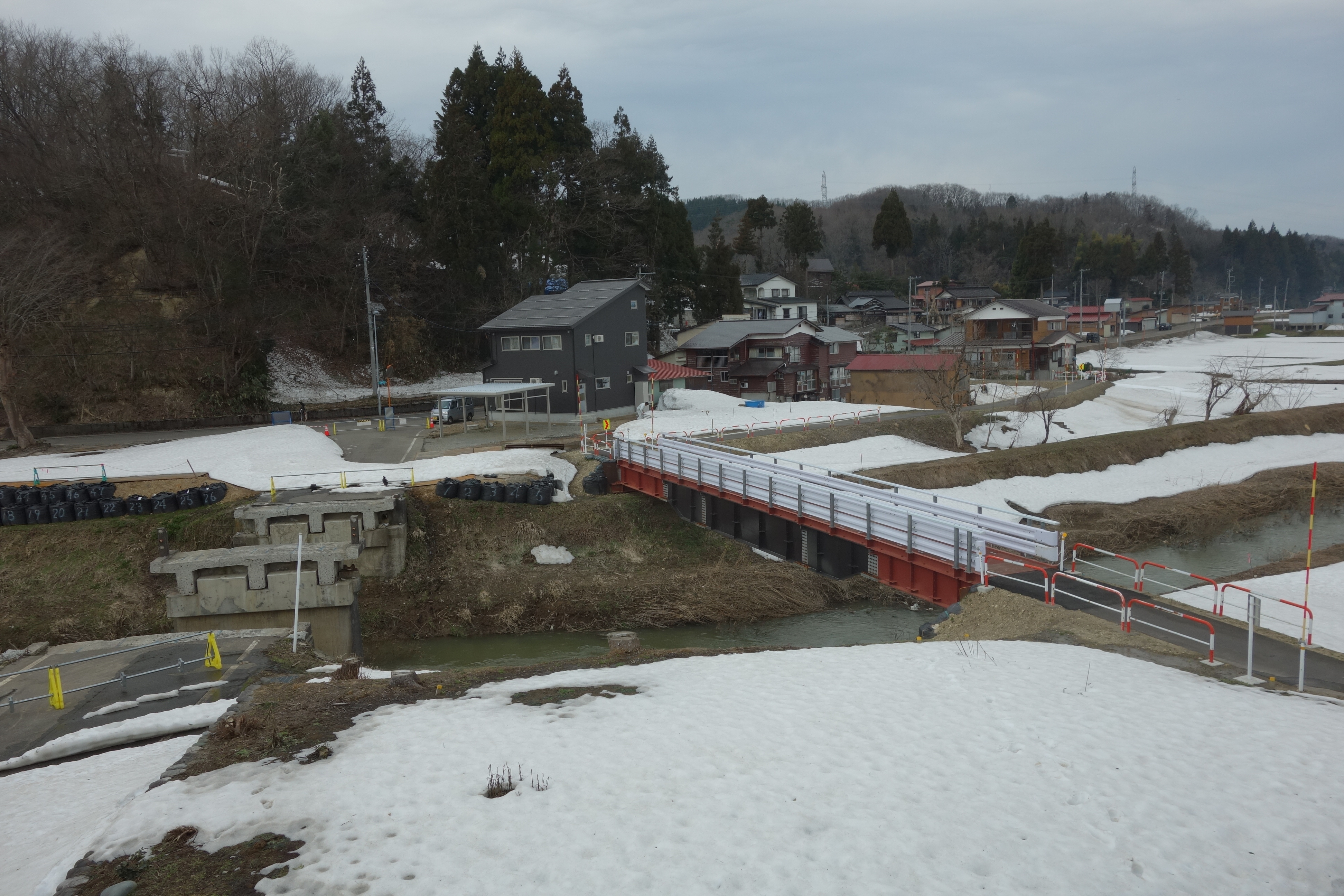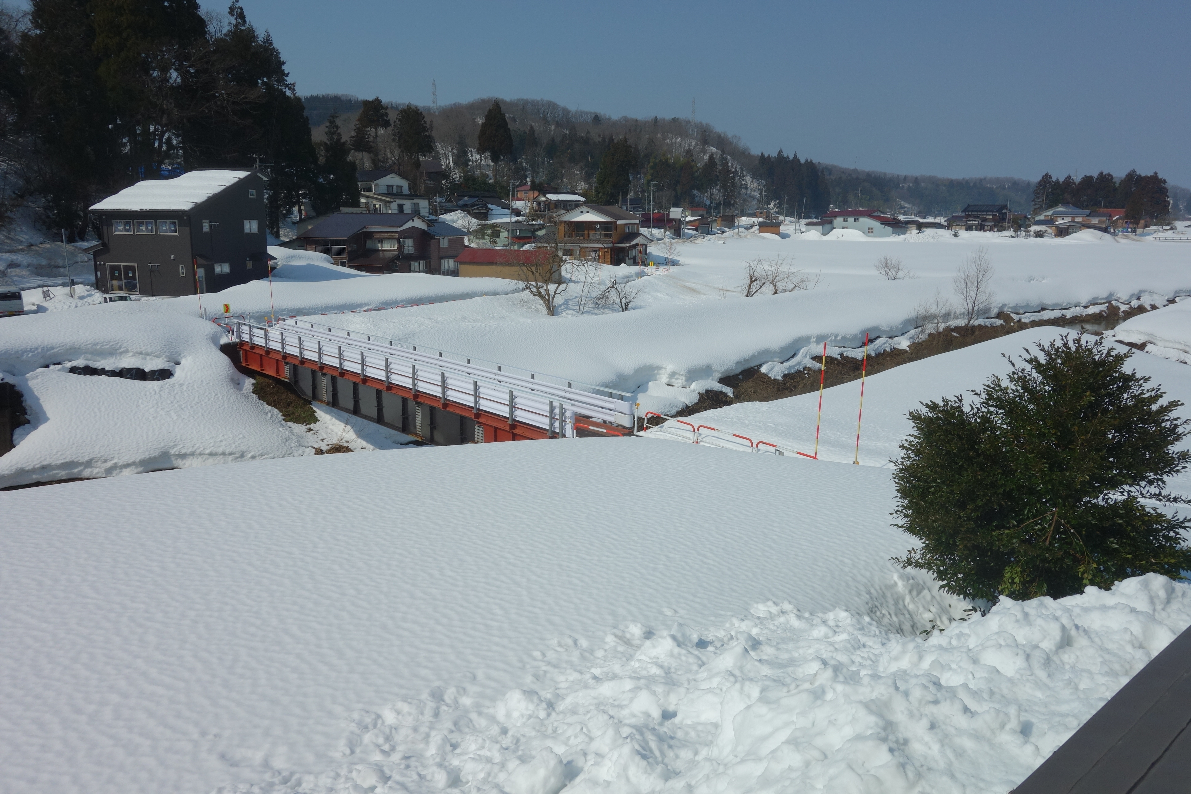 吉川は雪どけでたっぷりの水が流れていました。あっという間に春の風景です。