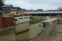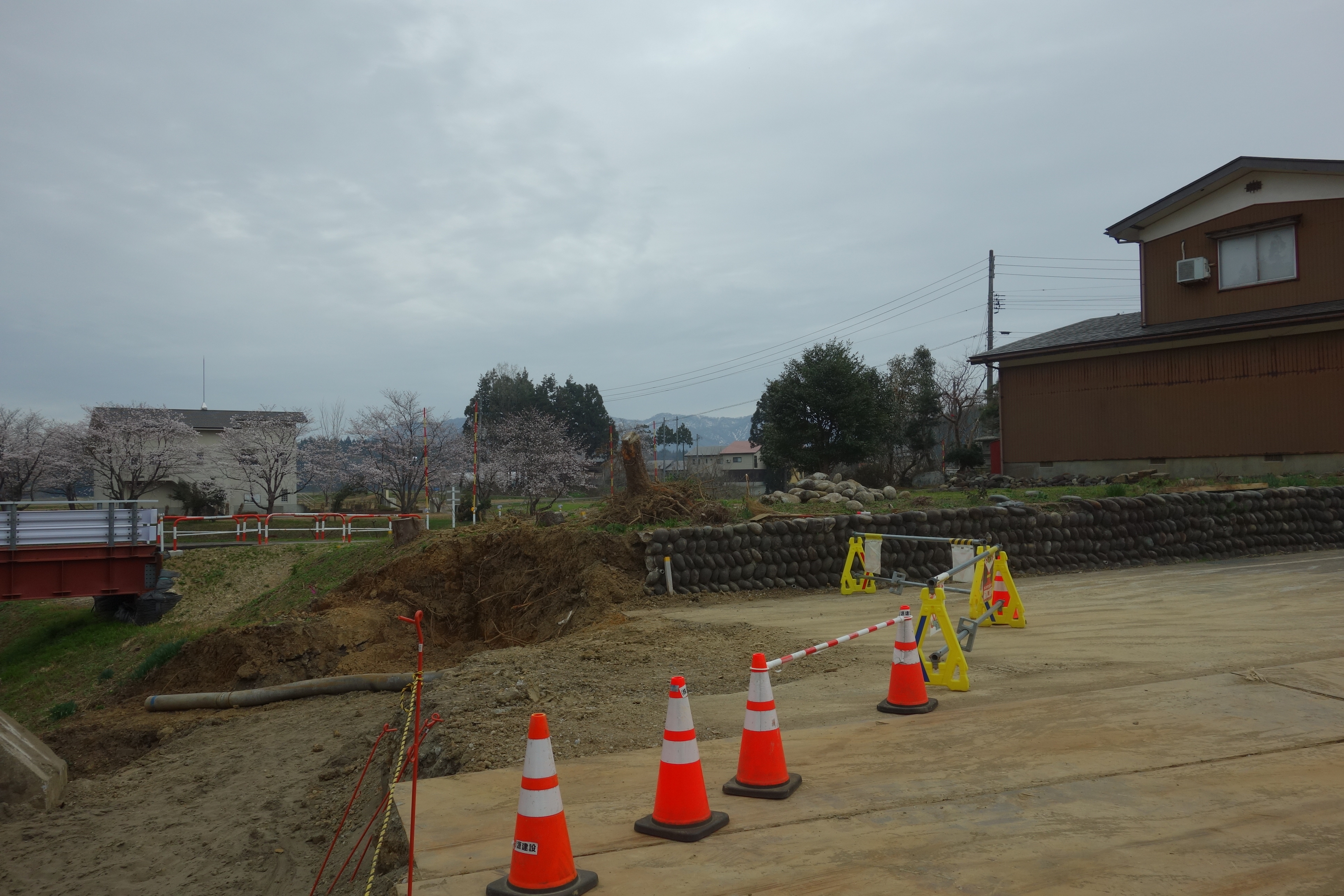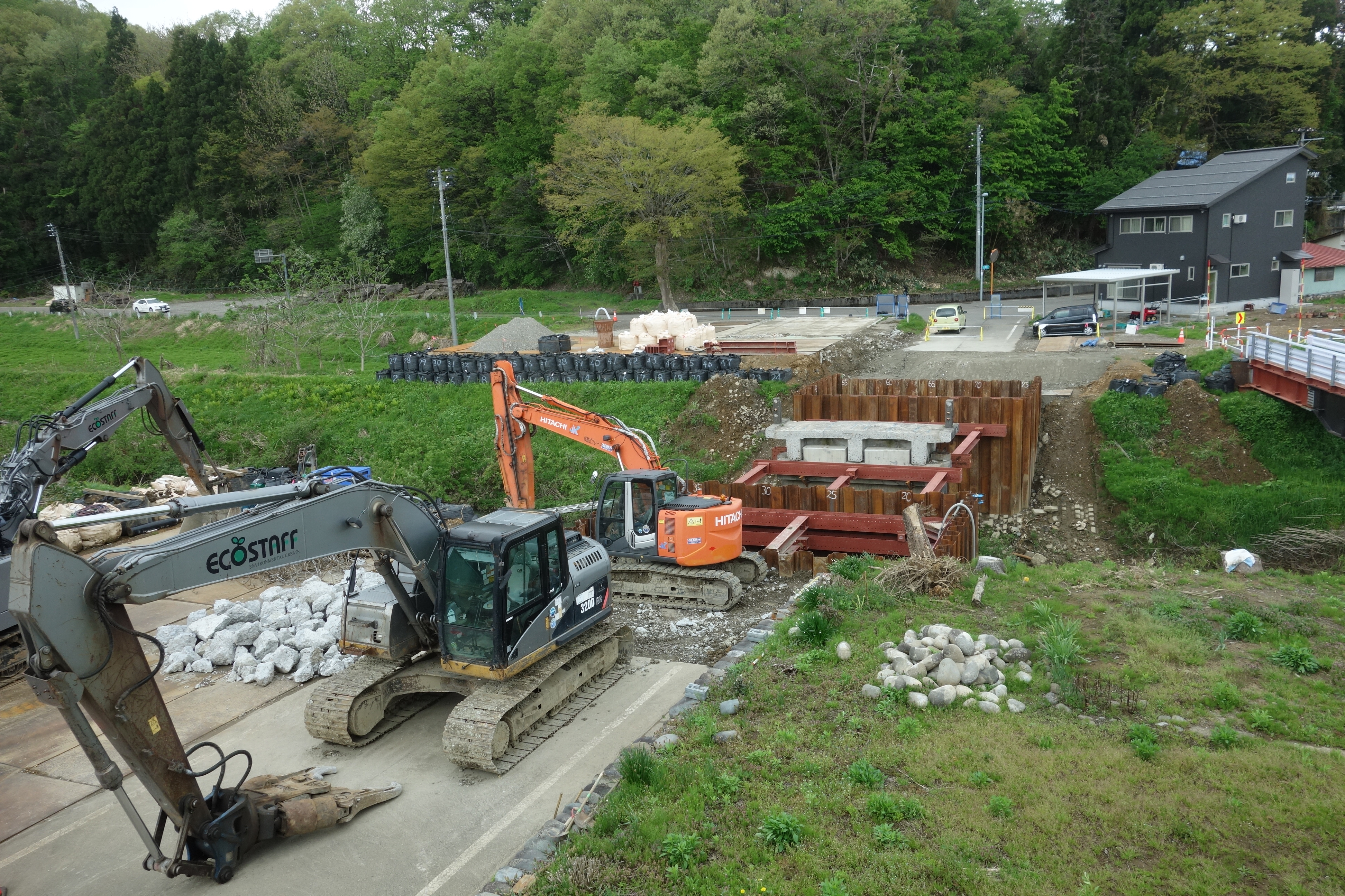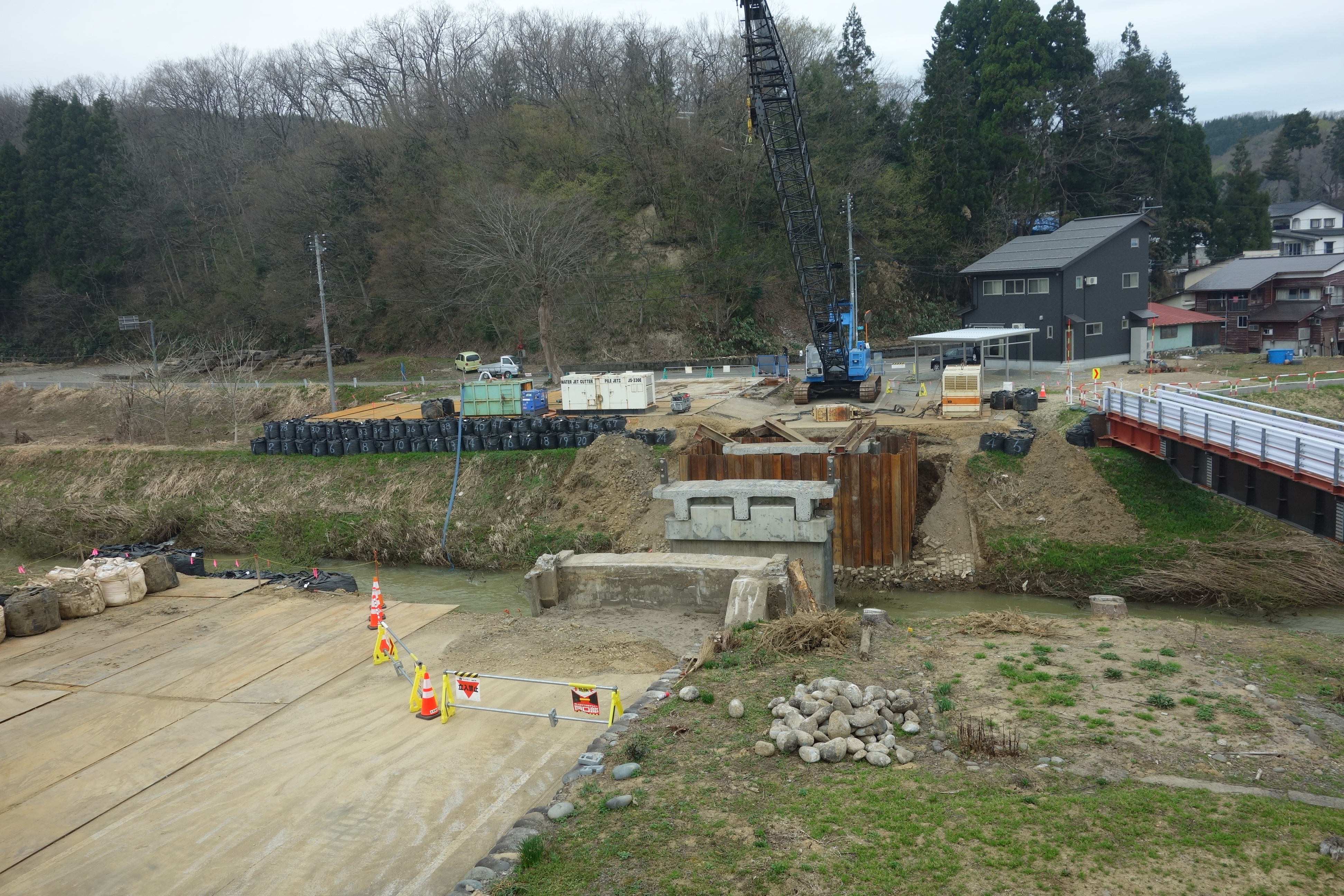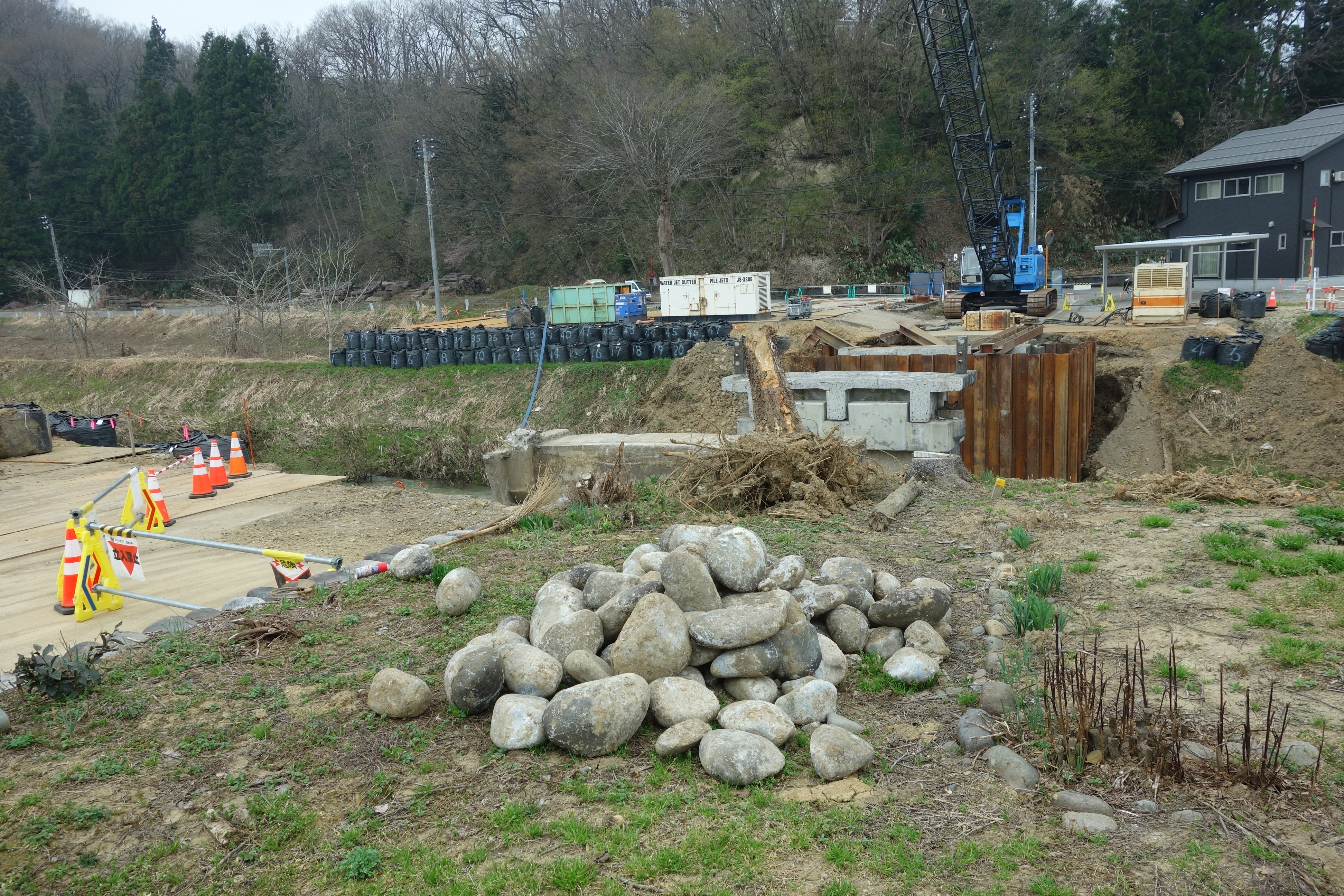 八幡橋の工事も再開されていて、土手の切り崩しも始まっていました。