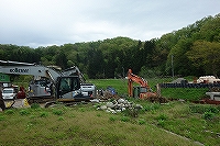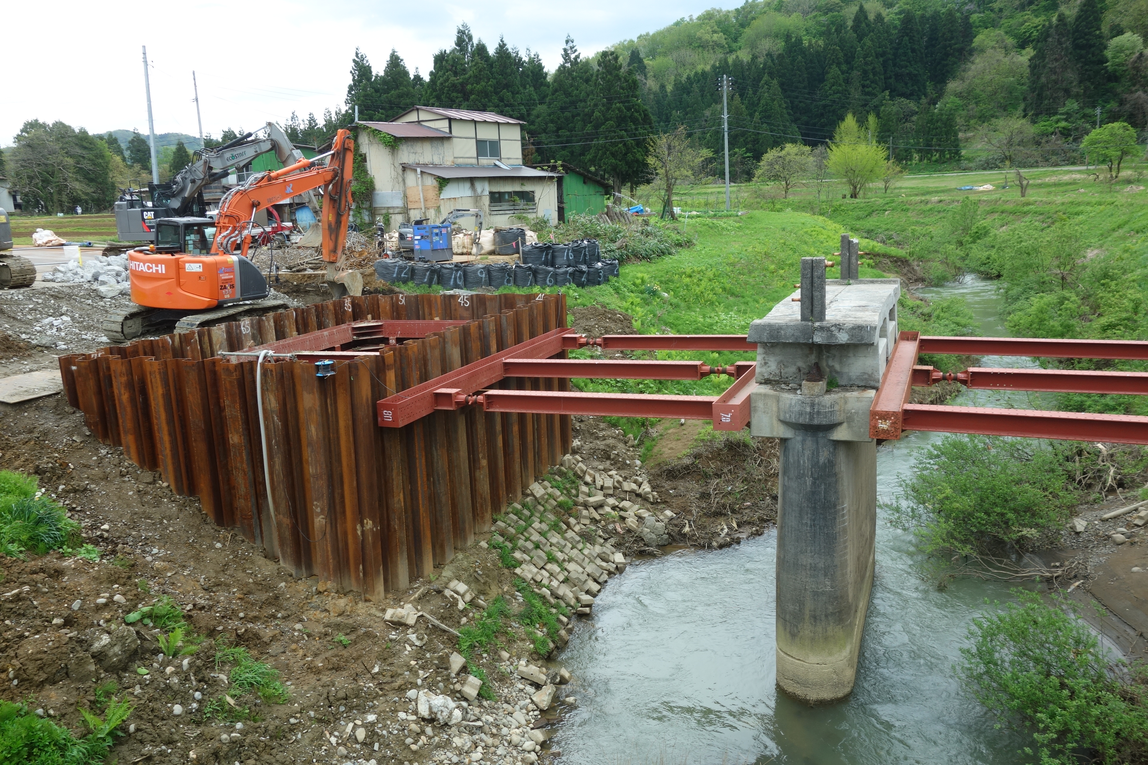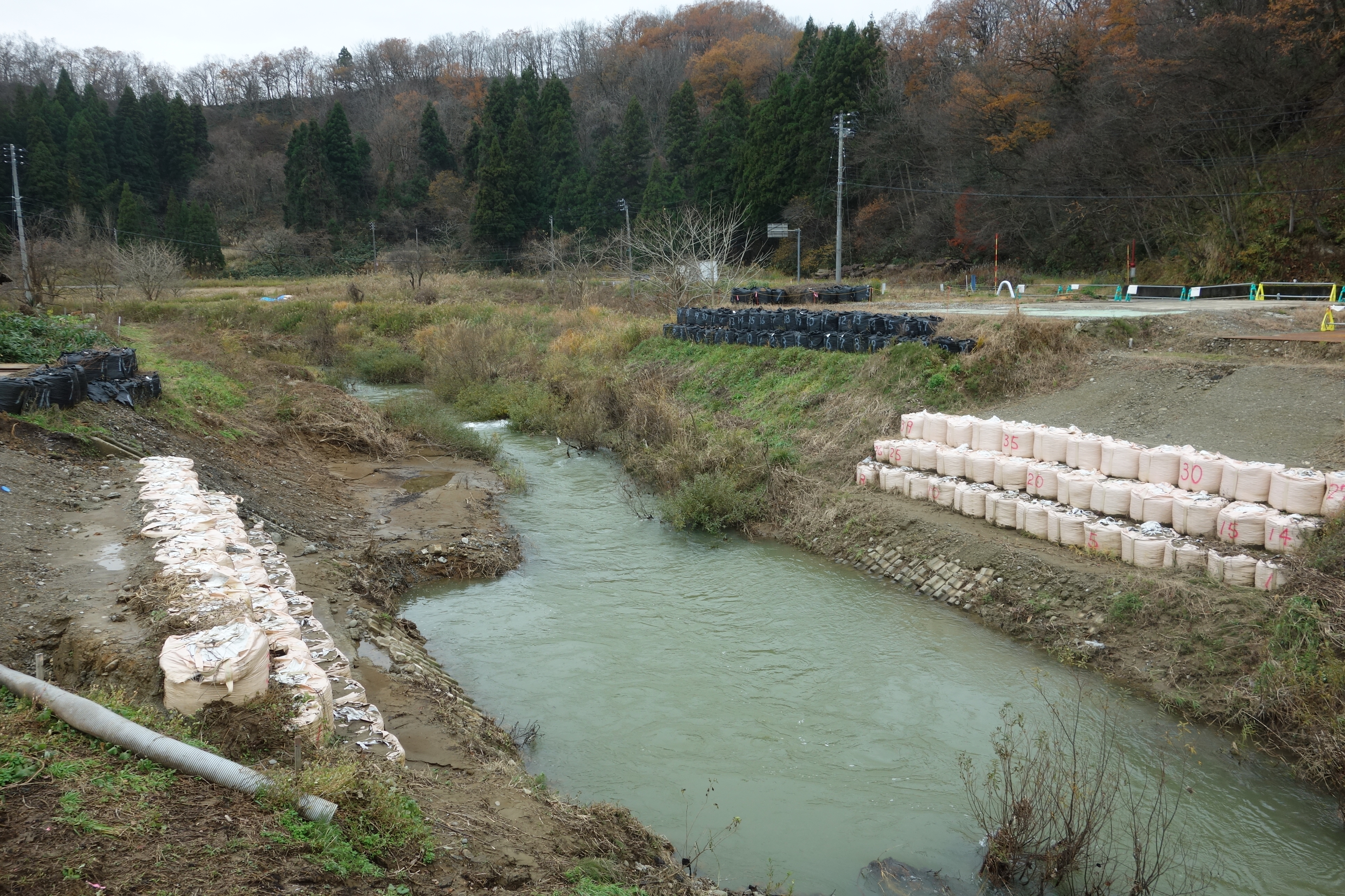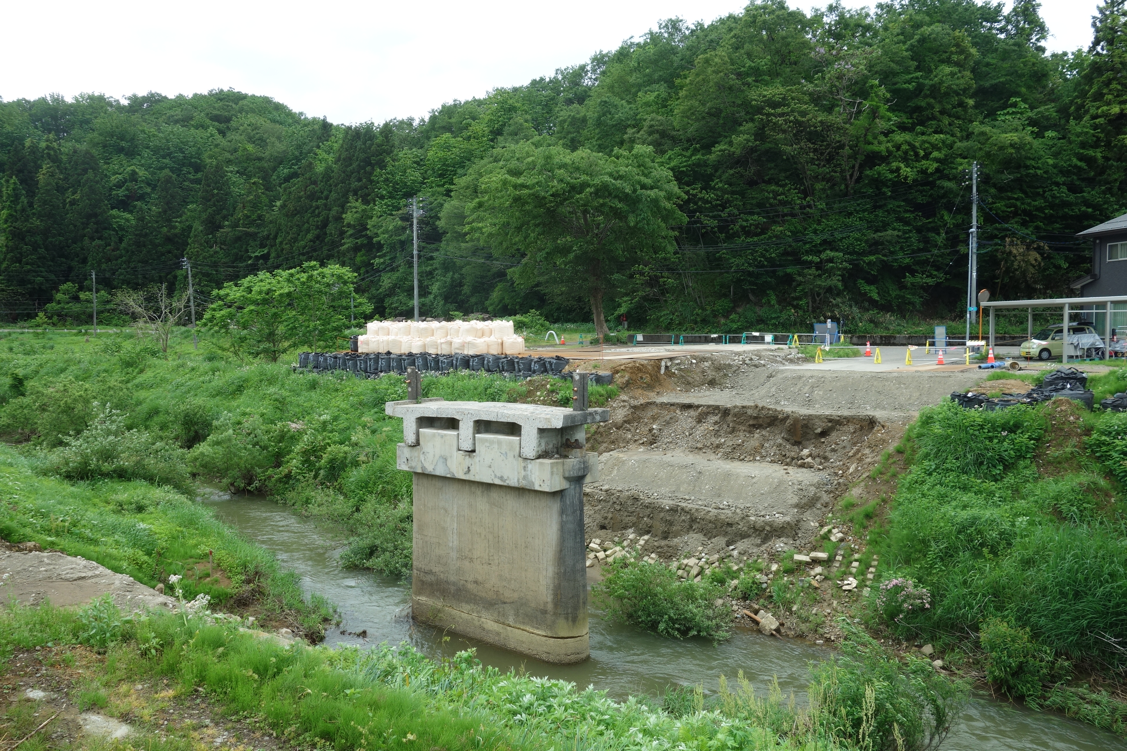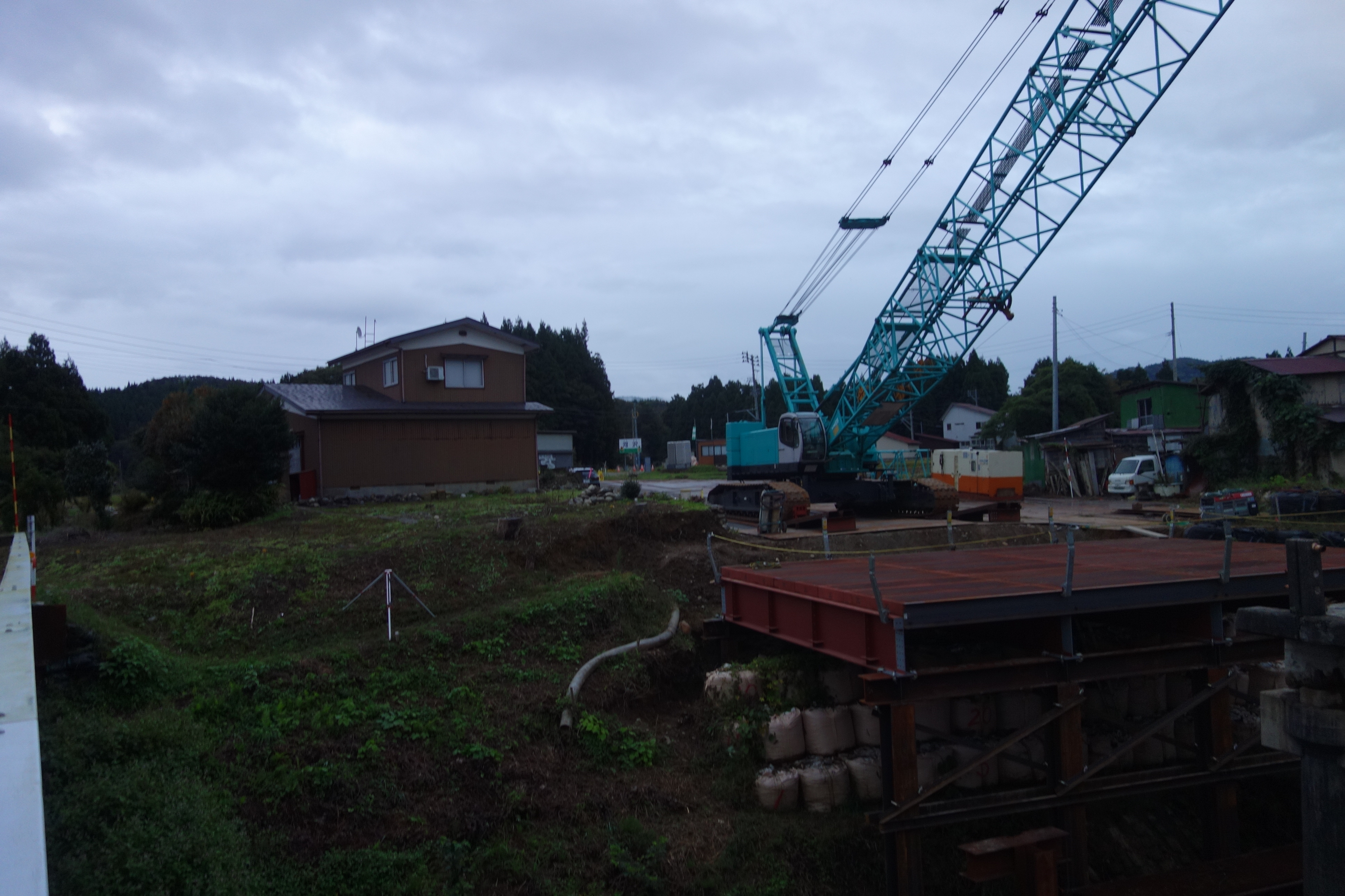 八幡橋の工事も再開されていて、土手の切り崩しも始まっていました。
