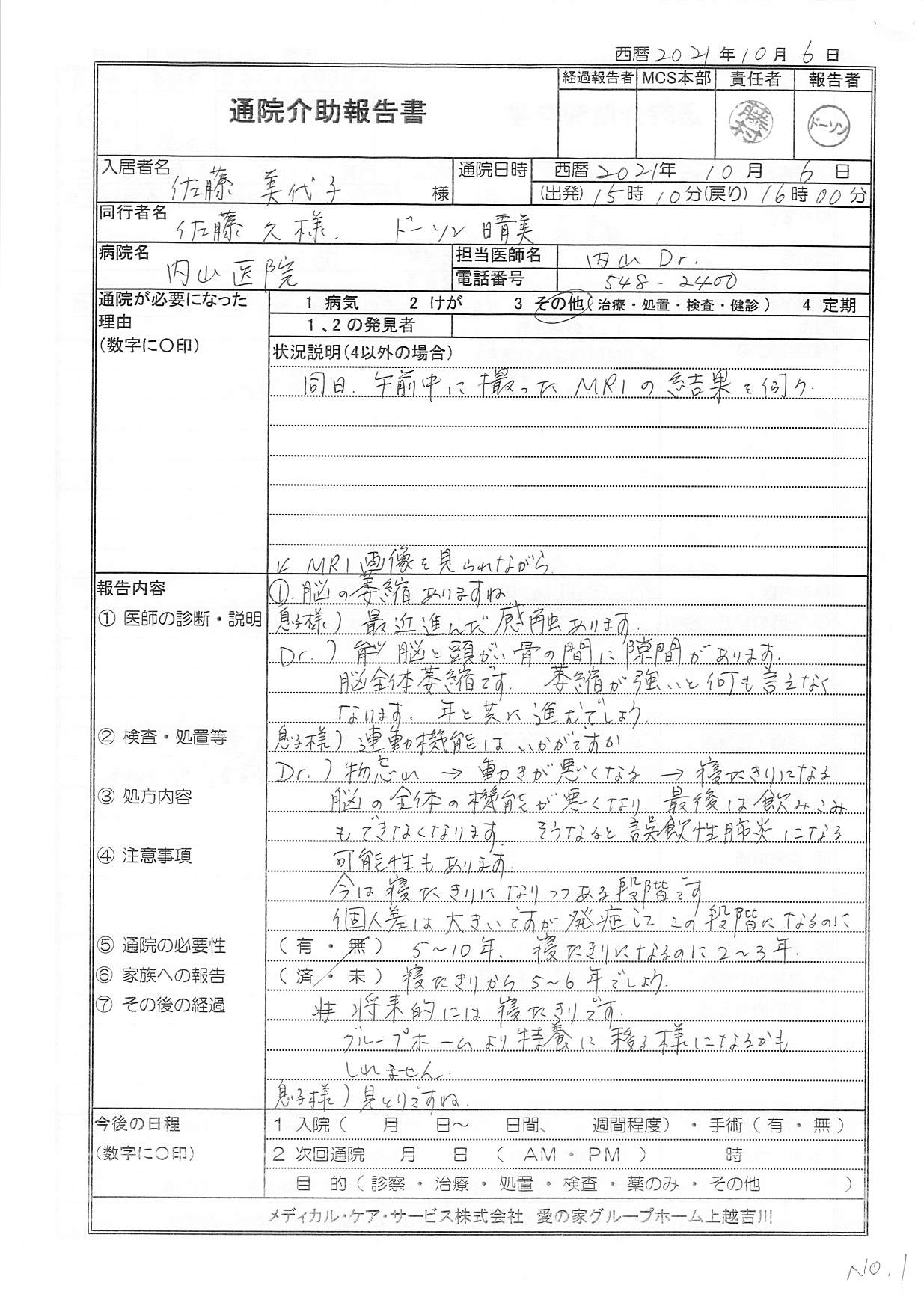 10/06通院報告(内山さん)その1・・・検査結果、久同席