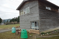 新旧車庫の裏口も羽目板を付け、家の南側の羽目板を上まで取り付けました