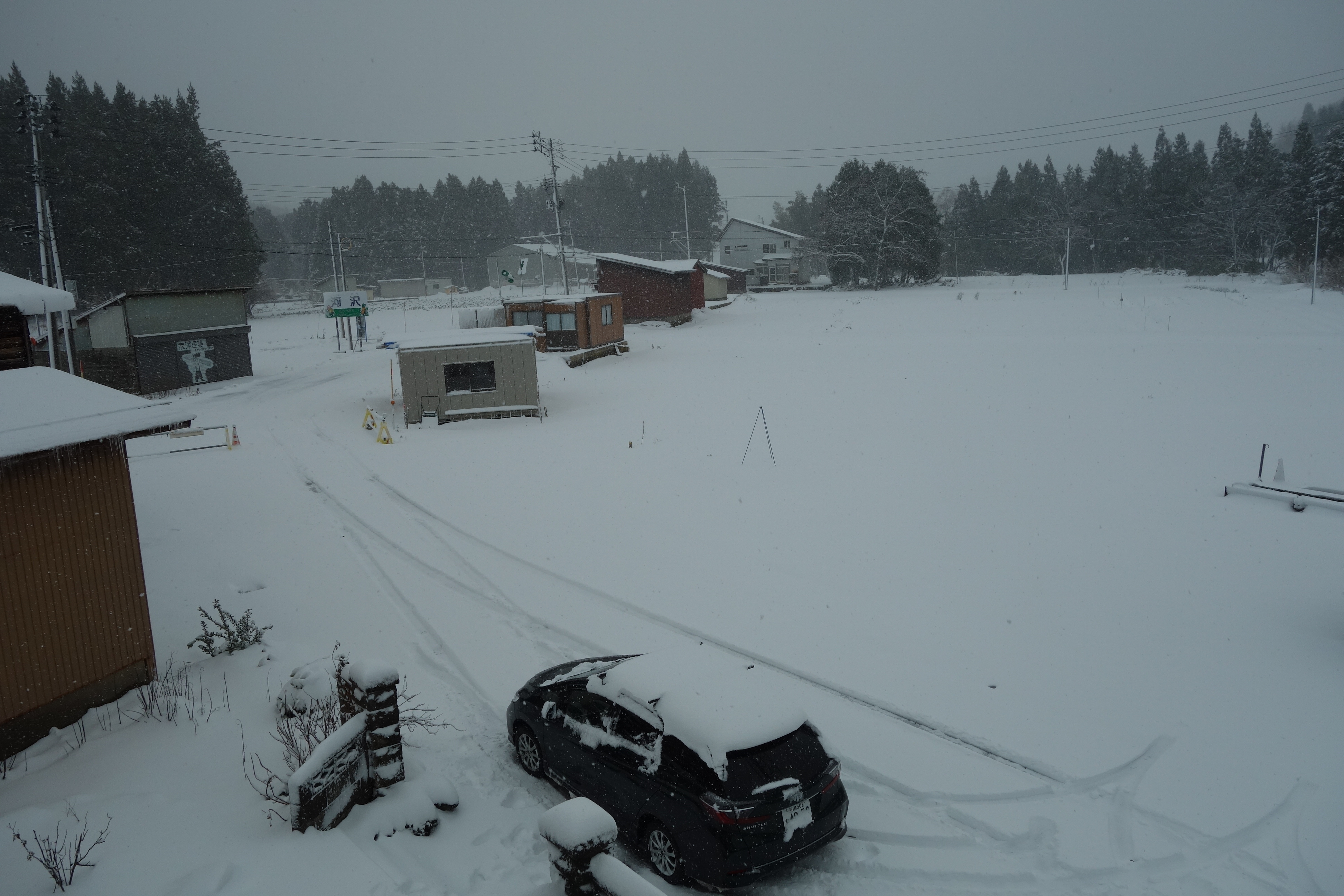 翌朝には家前に駐車していた車が半分ほど雪に埋もれてしまいました。