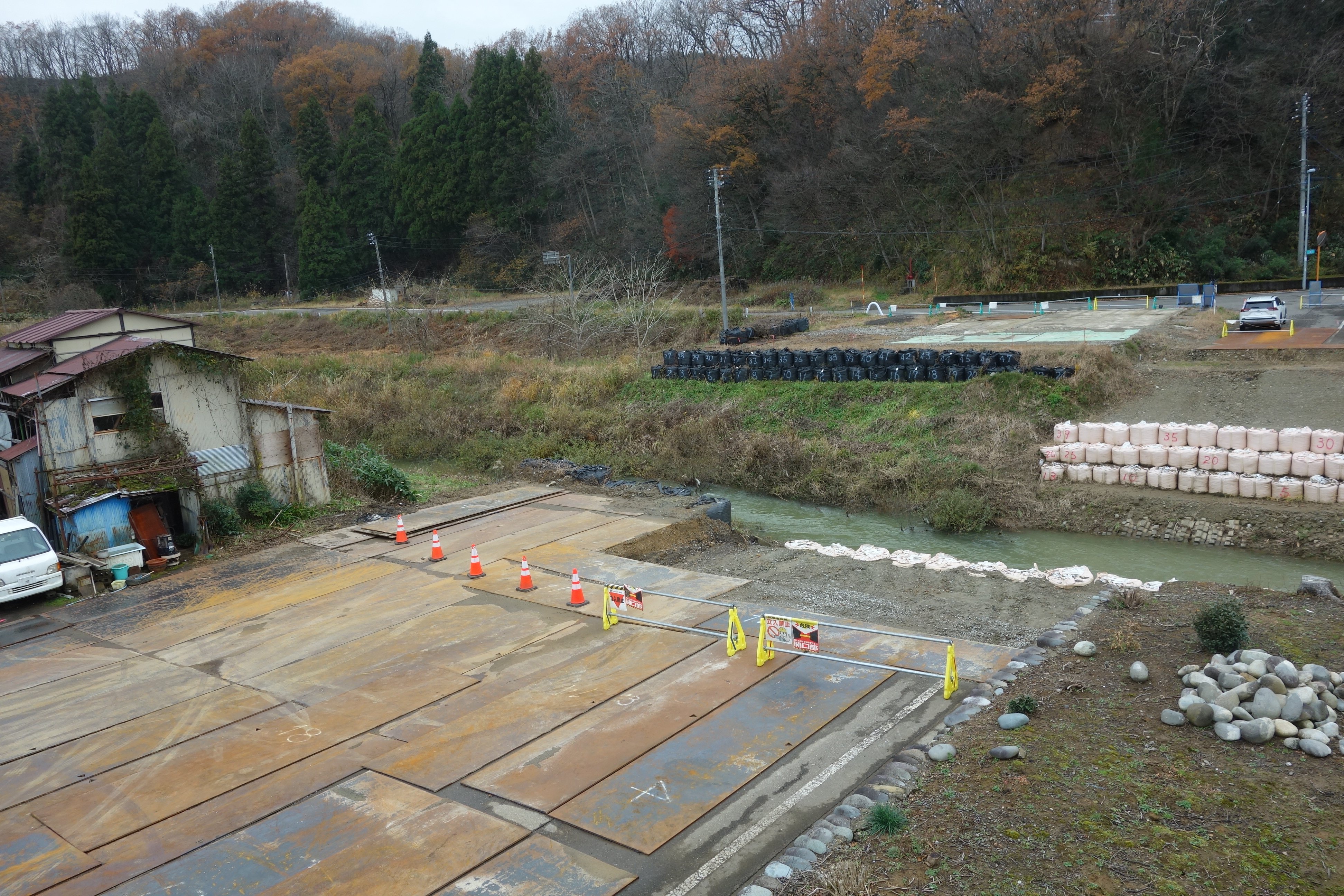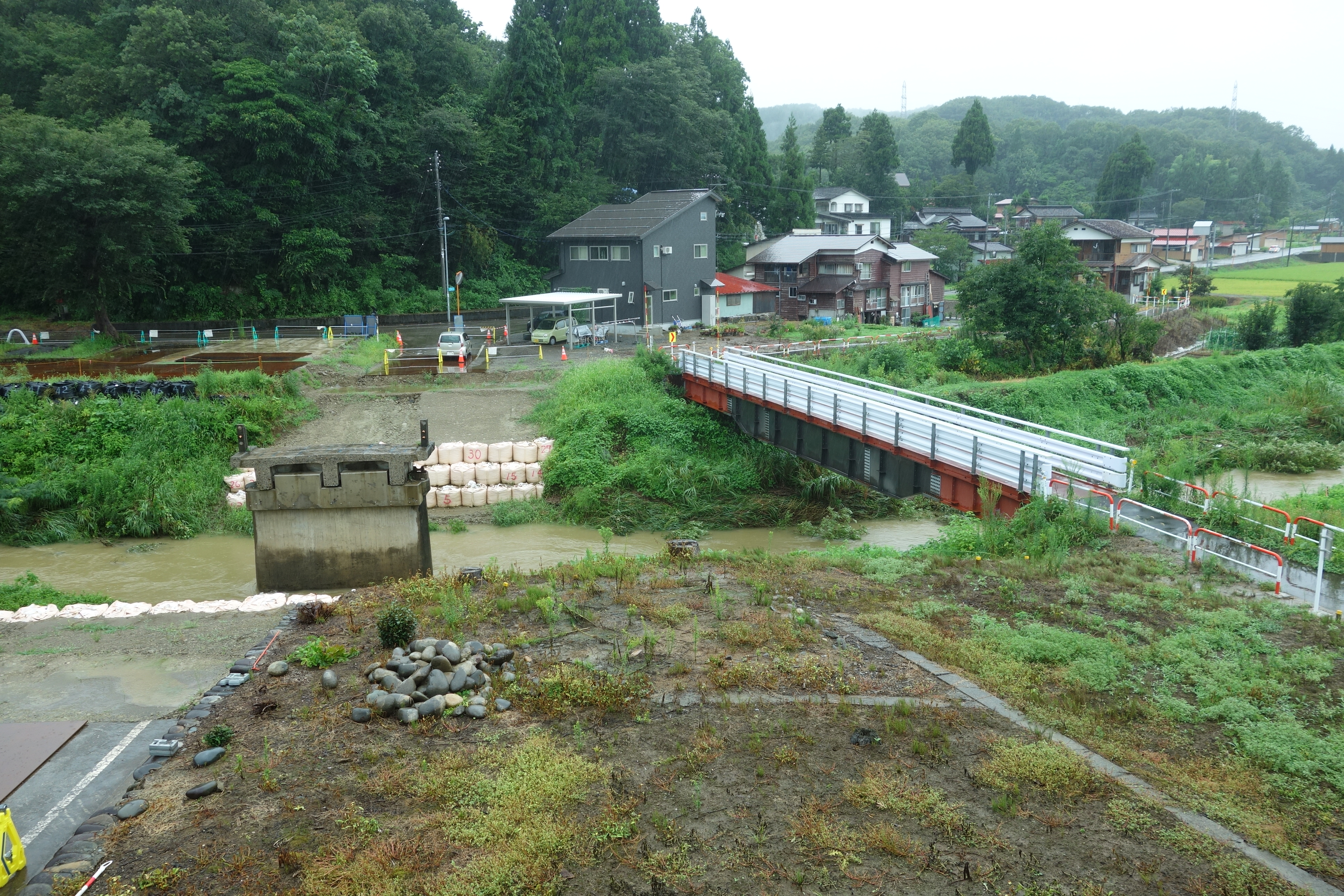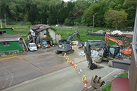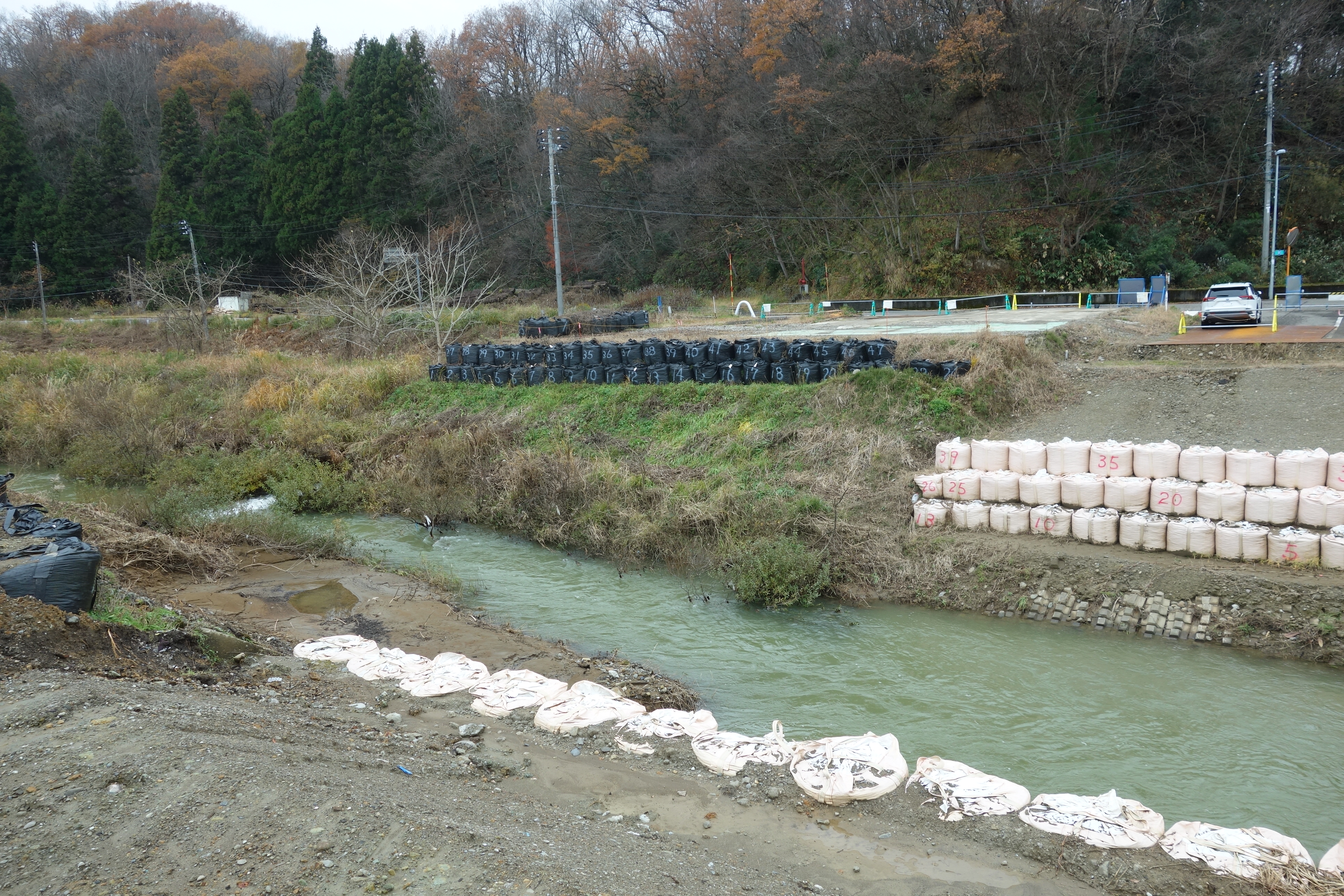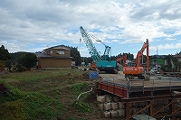 八幡橋の工事も再開されていて、土手の切り崩しも始まっていました。