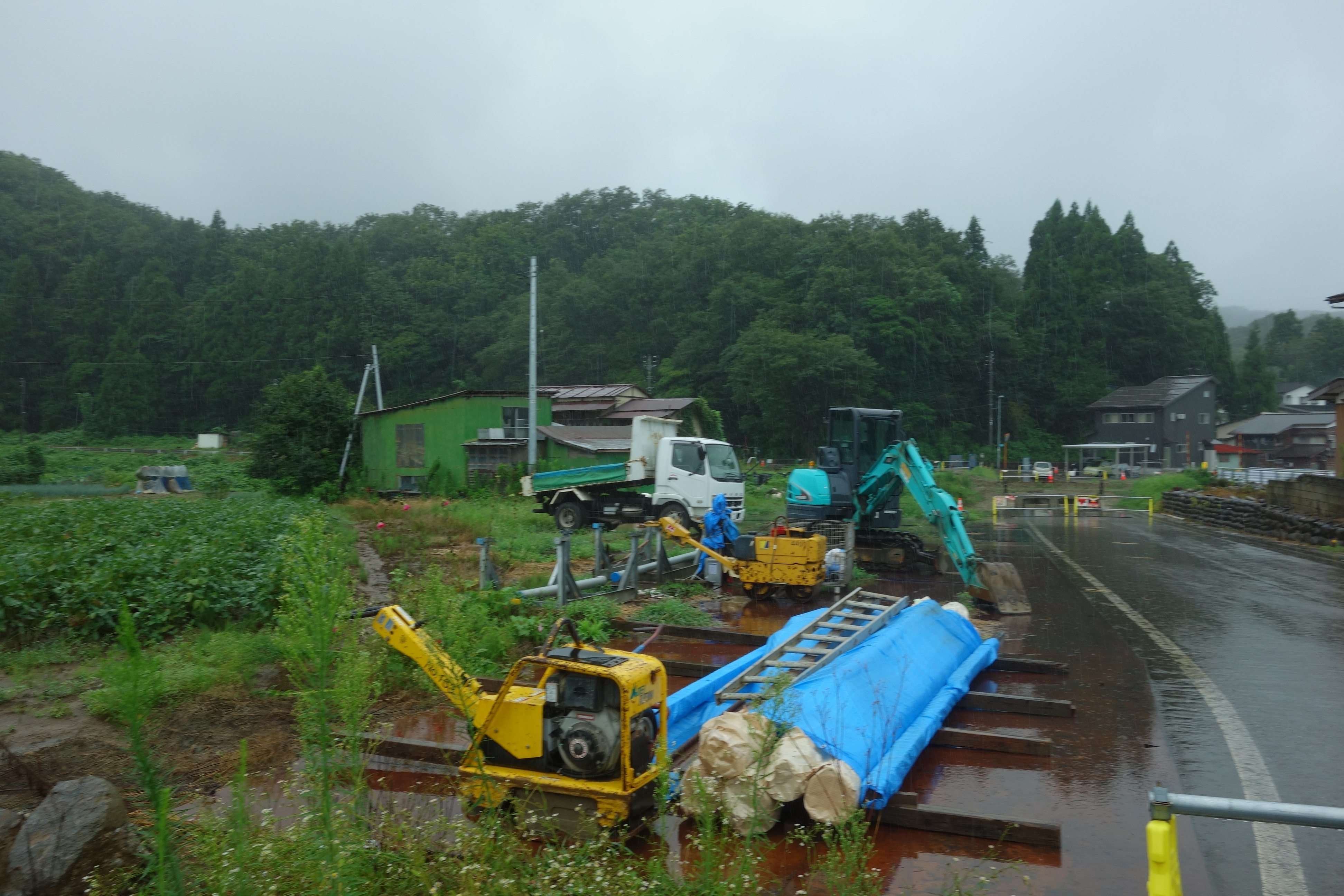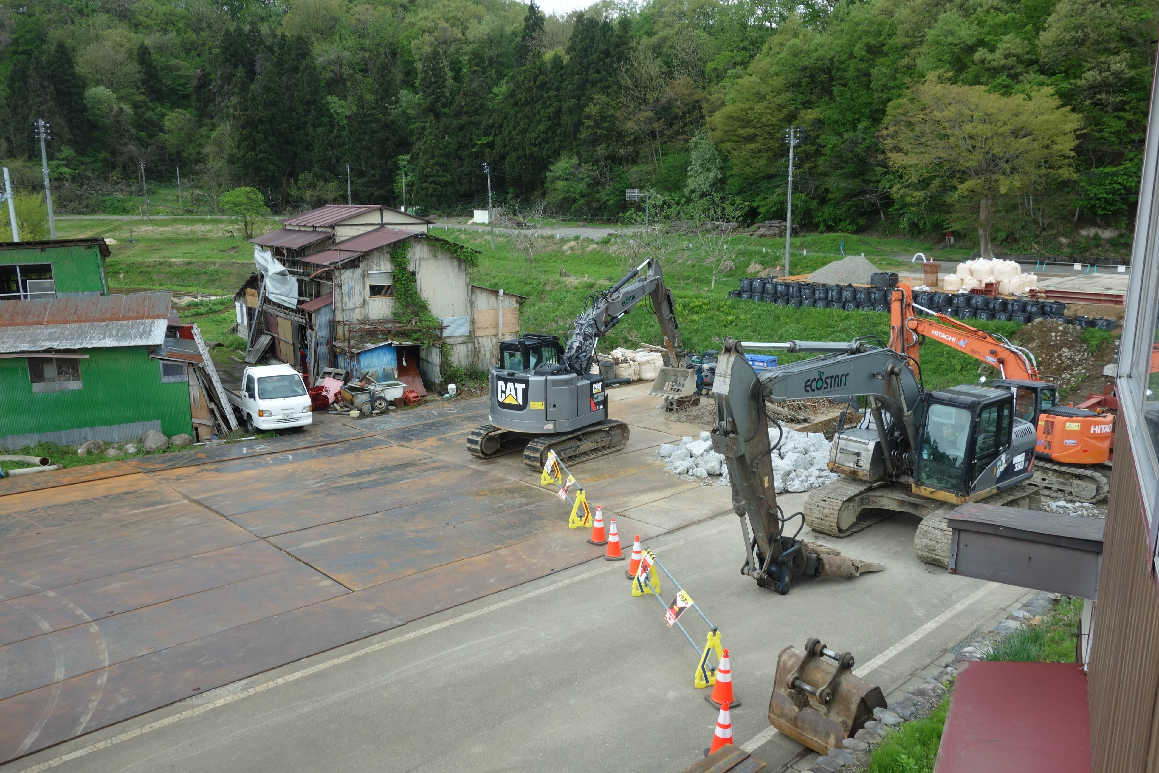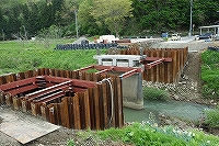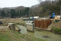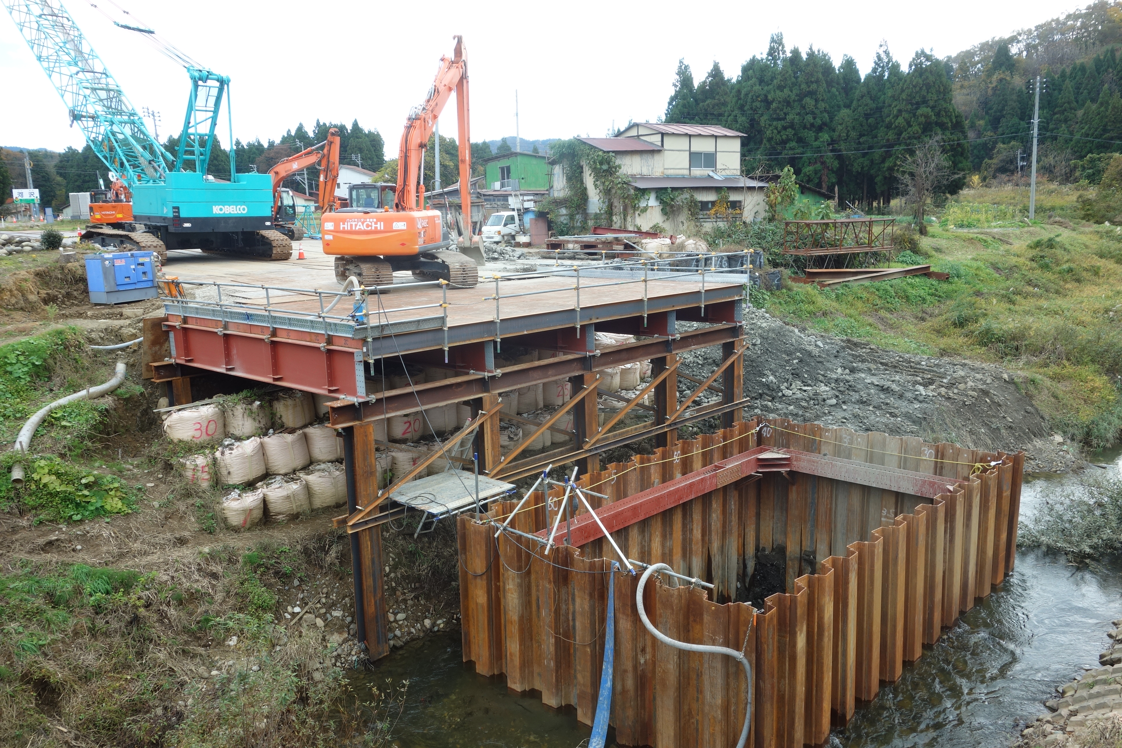 八幡橋の工事も再開されていて、土手の切り崩しも始まっていました。