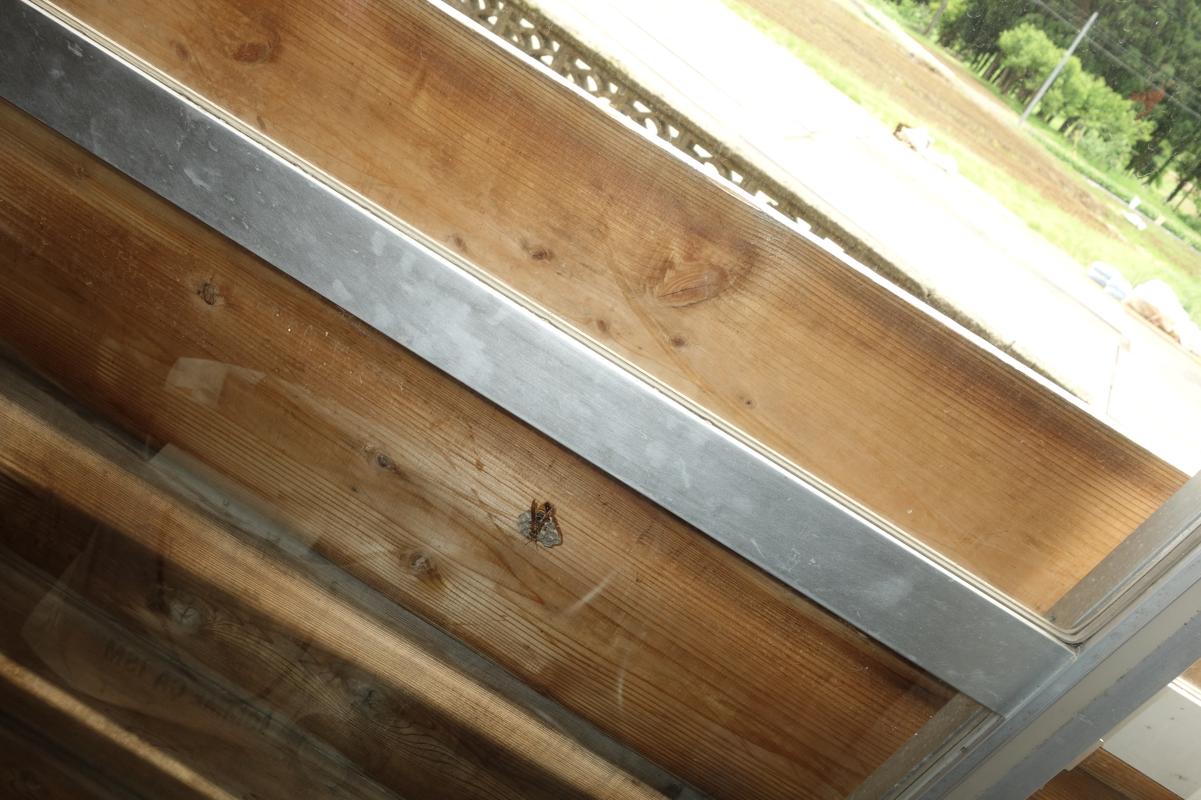 道路側の羽目板の内側にスズメバチが巣を作り始めていました。とりあえず駆除しました。