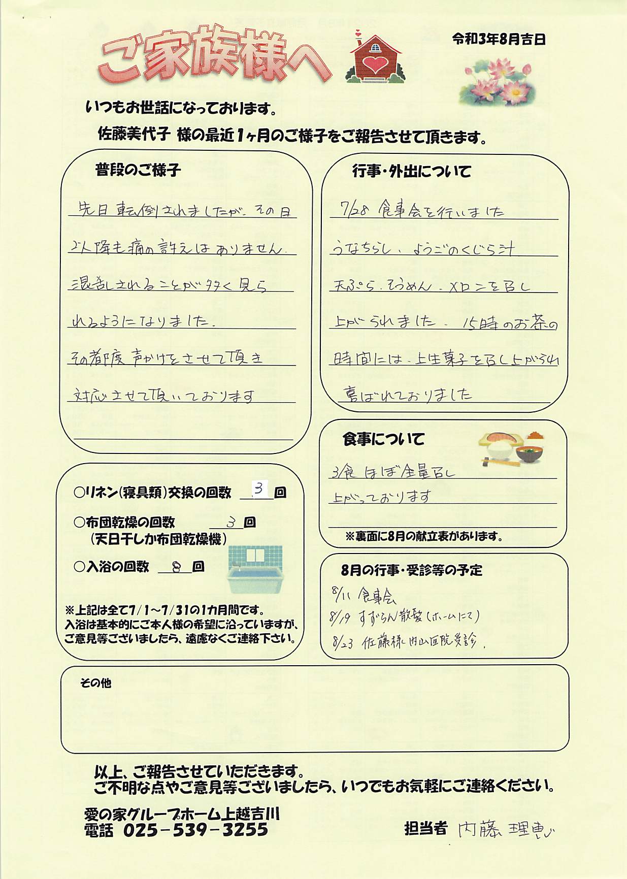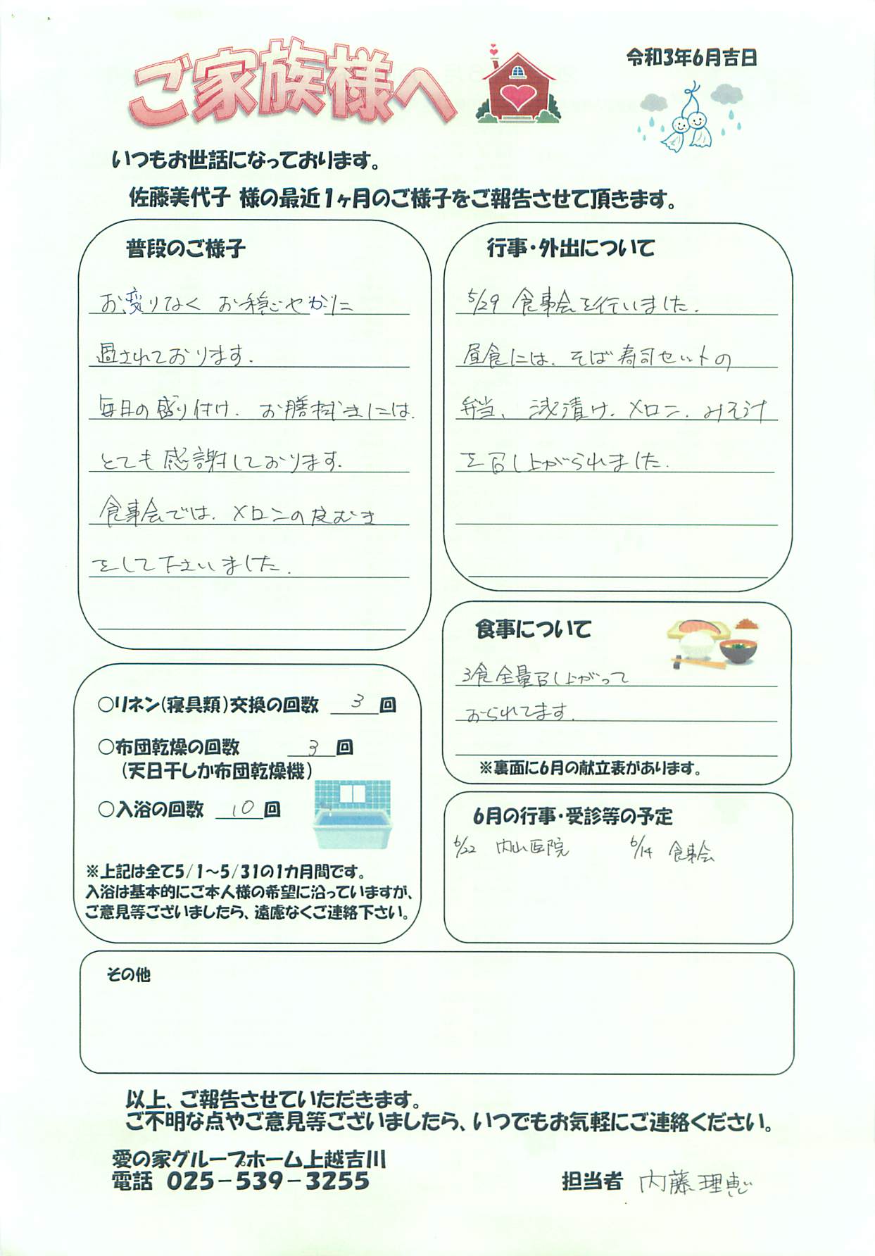 県外家族の面会は、現在の状況だと、玄関の内扉のガラス越しの面会となってしまうそうです。