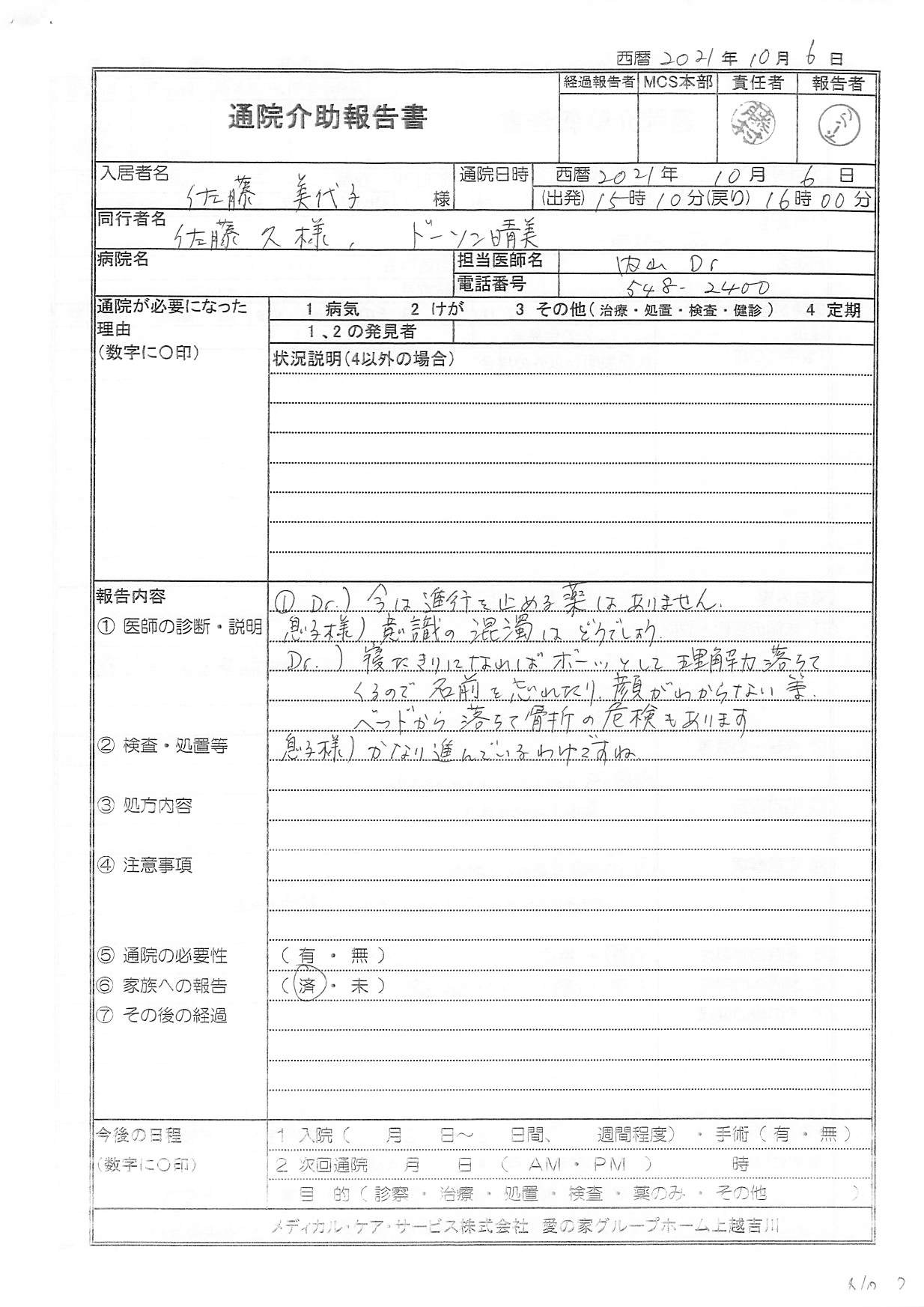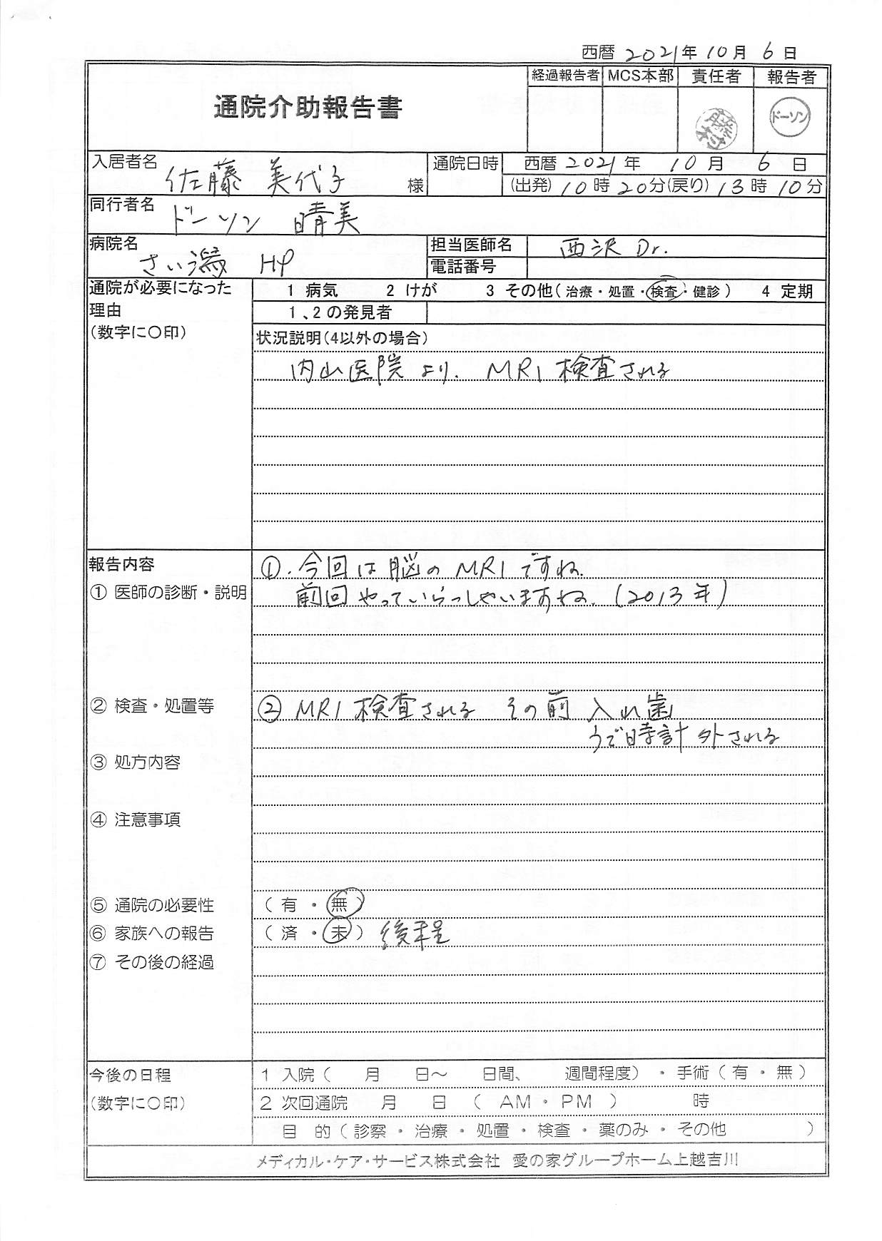 10/06通院報告(内山さん)その1・・・検査結果、久同席
